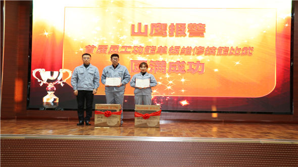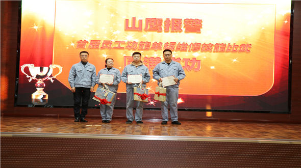 比武經過初賽與決賽兩輪激烈的角逐,共評選出一等獎一名:整機車間李崢;二等獎兩名:整機車間齊濱、劉婷婷;三等獎三名:整機車間張紅、李碩、客服高洪健。由副總經理湯天貞向獲獎者頒發獎品與榮譽證書。